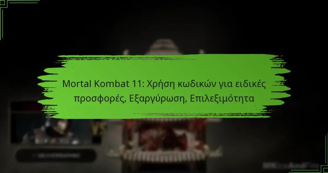 Η εξαργύρωση κωδικών στο Mortal Kombat 11 επιτρέπει στους παίκτες να εισάγουν συγκεκριμένους κωδικούς για να ξεκλειδώσουν αποκλειστικό περιεχόμενο εντός του παιχνιδιού, ενισχύοντας την εμπειρία τους με νέους χαρακτήρες, δέρματα και μπόνους. Για να εξαργυρώσετε έναν κωδικό, απλά μεταβείτε στο κύριο μενού, επιλέξτε “Extras” και στη συνέχεια “Redeem Code” για να εισάγετε τον κωδικό σας και να επιβεβαιώσετε τις ανταμοιβές σας. Ωστόσο, οι παίκτες μπορεί να αντιμετωπίσουν κοινά προβλήματα όπως ληγμένους κωδικούς ή τεχνικά σφάλματα που μπορεί να εμποδίσουν τη διαδικασία εξαργύρωσης.